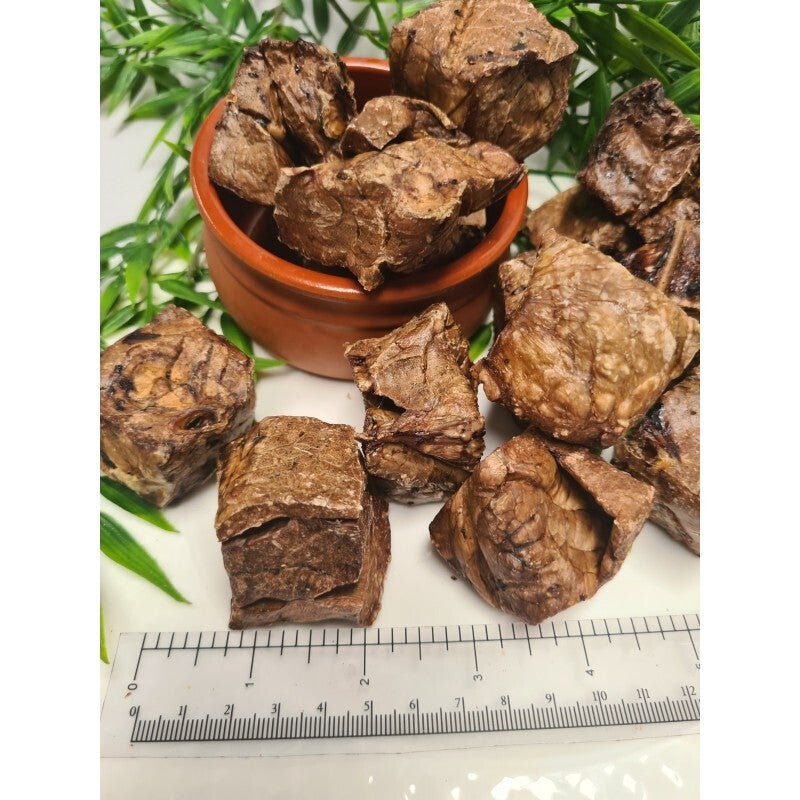 K9 Crunchies - Dried random cubed beef lung. Crisp, crunchy, light and airy nutritious treat.Dogs will seek to impress to get some of these.