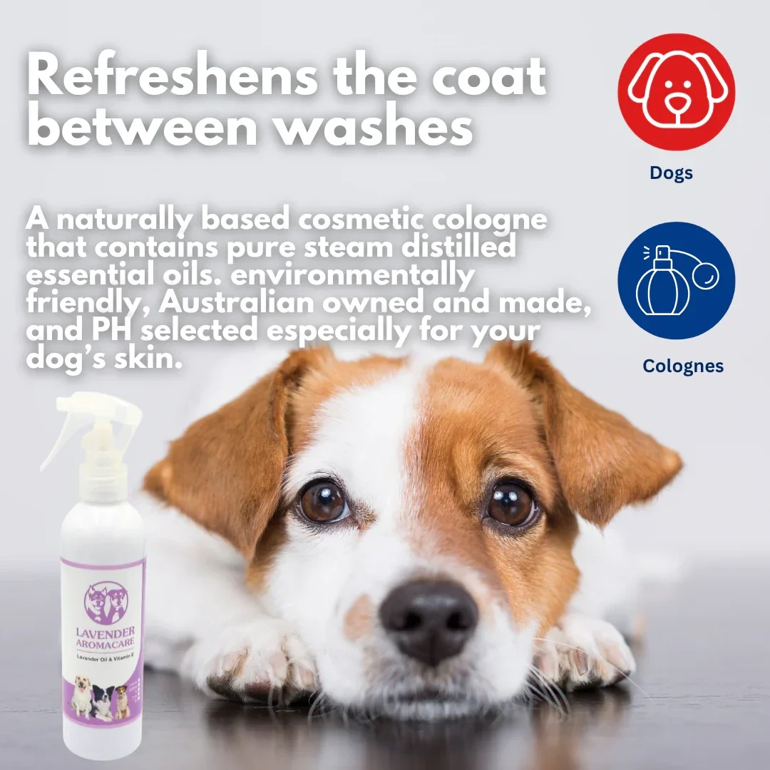The Lavender Aromacare spray is a naturally based cosmetic cologne that contains pure steam-distilled essential oils. environmentally friendly, Australian-owned and made, and PH-selected especially for your dog’s skin.