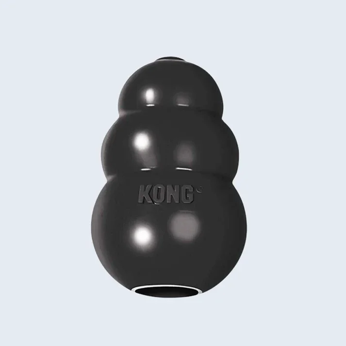 The KONG Extreme dog toy represents the most durable strength of KONG rubber. Designed for the toughest of chewers, the KONG Extreme offers enrichment and helps satisfy dogs’ instinctual needs. The KONG unique, ultra-durable, natural rubber formula is designed for determined chewers, while the erratic bounce fulfills a dog’s need to play. Want to extend play time? Be sure to stuff with tempting bits of kibble and entice with a dash of peanut butter. Add to the fun by adding KONG Snacks and top with KONG Easy Treat. Stuff and Freeze for a longer-lasting challenge.