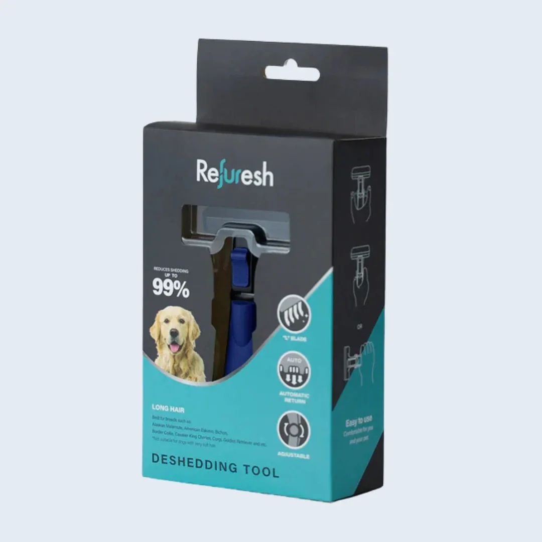 Unpack your new Refuresh Deshedding medium-sized Brush, go fetch your furry friend, and begin their at-home grooming journey with ease.