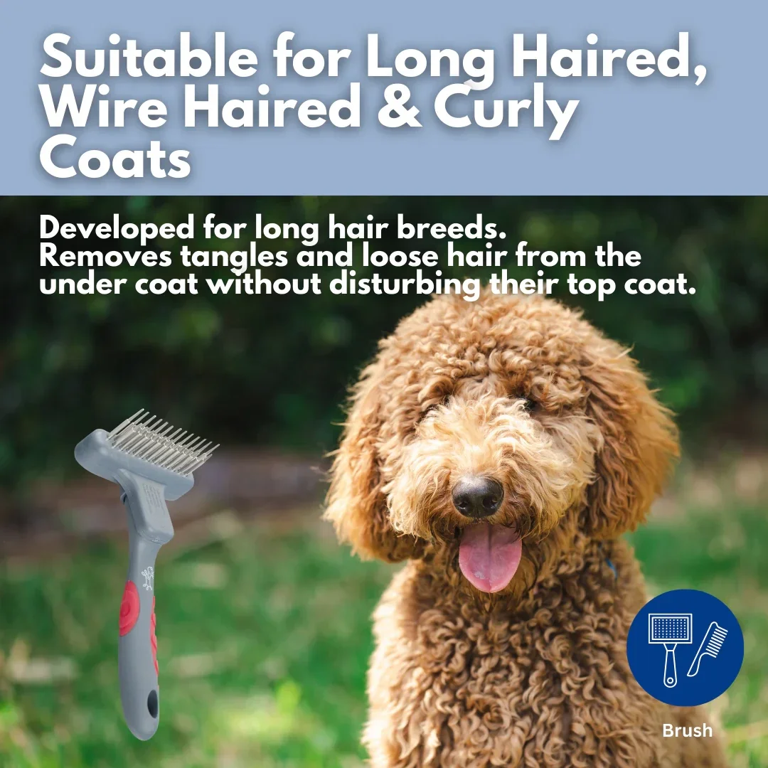- Removes tangles and loose undercoat hair without disturbing the topcoat